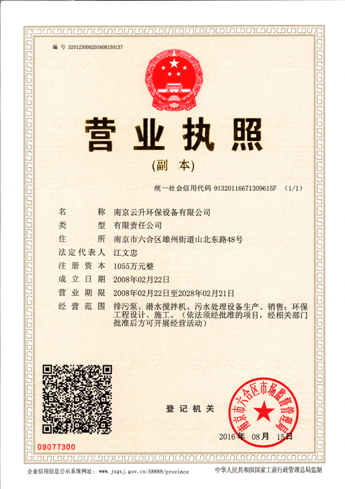 專業的各類水處理工程、水處理專用設備及泵類產品生產服務商南京云升環(huán)保設備有限公司占地面積二萬三千五百平方米,建筑面積約七千八百平方米,現有員工195名,各類工程技術人員41人,其中中高級以上22人,企業擁有各類大型專用機械72臺套,其中試驗臺3套,動靜平衡機4臺,各類機床28臺,CNC數控車床4臺,各類焊接設備19臺,各類起吊設備8臺套,交通、運輸工具8輛,為產品開發(fā)、生產制造、質量控制、快速服務提供了強有力的保障。南京云升環(huán)保設備有限公司全體員工愿以環(huán)境保護為己任,以市場為導向,以優(yōu)質服務為原則,嚴格的管理、先進的生產工藝、至上的品質、完善的售前售后服務,與廣大新老用戶攜手并進,共鑄輝煌。